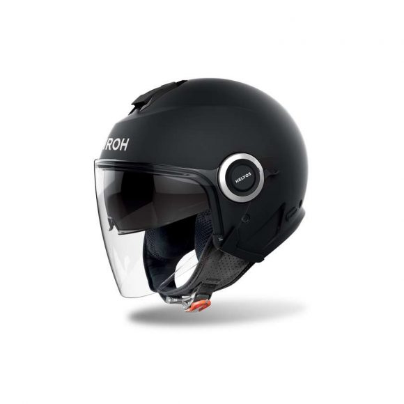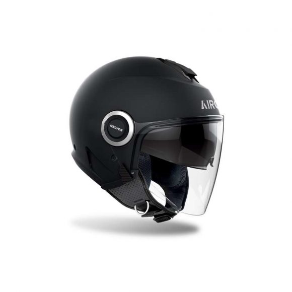 Čelada Airoh Helyos je na voljo v treh različnih velikostih glede na zunanjo lupino iz HRT (visoko odpornega termoplasta), ki lahko pokrije široko paleto različnih velikosti in se lahko popolnoma prilega vsakomur, njene značilnosti pa vključujejo vgrajen sončni vizir, pred priprava za komunikacijski sistem, nastavljivo mikrometrsko zaponko, popolnoma odstranljivo in pralno hipoalergeno notranjo podlogo s kontrastnimi šivi, sistem za prezračevanje in odvajanje zraka v karbonskem izgledu.