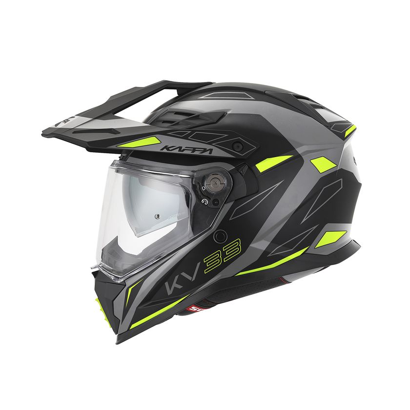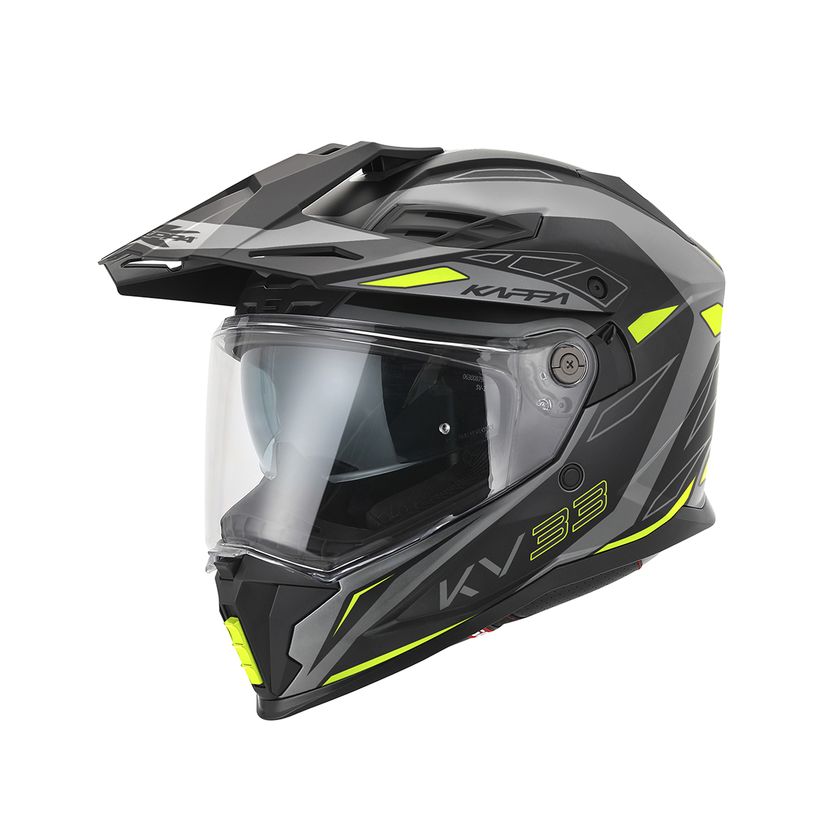 Kappa KV33 čelada je izdelana za ponujanje udobja, velik sprednji vizir ponuja večjo vidljivost, notranji sončni vizir ščiti pred soncem, zračniki nameščeni na določenih predelih kateri omogočajo maksimalno zračnost. Notranja obloga na čeladi Kappa KV33 je pralna in antibakterijska. Zapiranje je enostavno z mikroregulacijo.