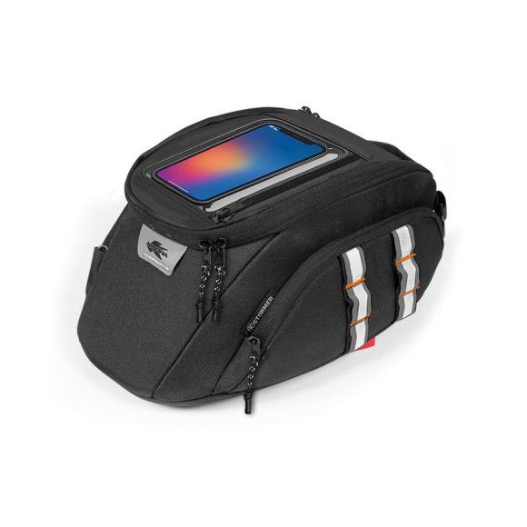 K’STORMER ST0103 je 10-litrska torba za rezervoar, opremljena z žepom za pametni telefon s prozornim PVC zaslonom in zaslonom na dotik.