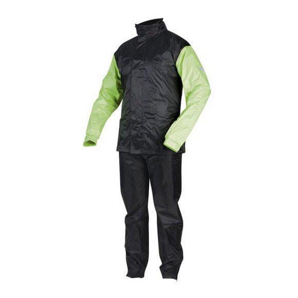 Dežni komplet (jakna in hlače), odsevni elementi za višjo vidnost ob slabem vremenu, varjeni šivi, notranja podloga mrežasta. Dodaten žep za dokumente. Nastavitve v zapestju, na nogah in v pasu omogočajo optimalno prileganje.