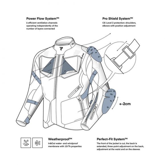 Motoristična jakna Rebelhorn Hiker IV je nova verzija priljubljenega modela, namenjenega voznikom, ki cenijo udobje in funkcionalnost za vsakodnevno vožnjo in kot tudi potovanja. Ta dvoslojna jakna združuje vzdržljivost s sodobnim dizajnom in praktičnimi rešitvami. Hiker IV ima odstranljivo podlogo In & Out HydraShield z odličnimi lastnostmi za nepremočljivost in dihanje, ki jo lahko nosite tudi na vrhu jakne.